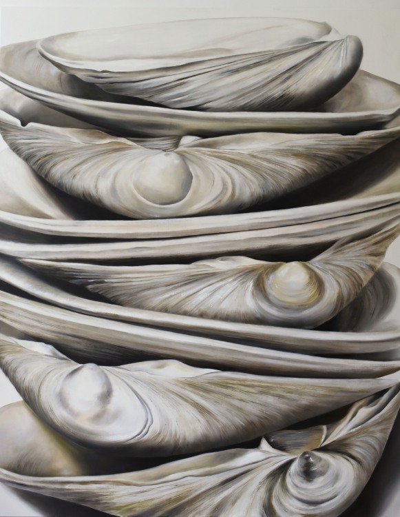 Renee Levin, "Surf Clam Stack No.15", 2021, Oil on wood, framed, 48x60", $7800