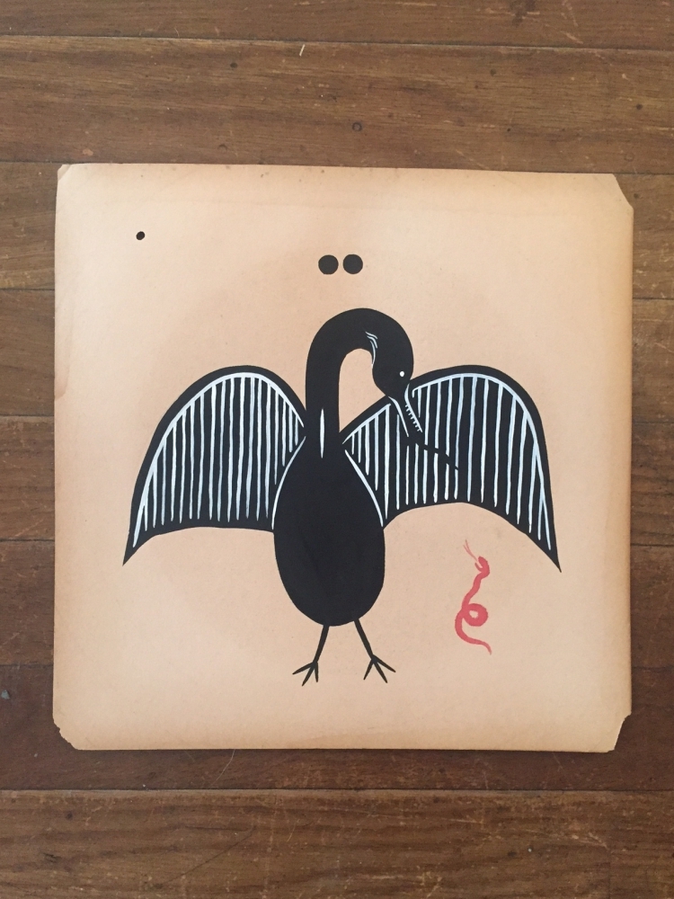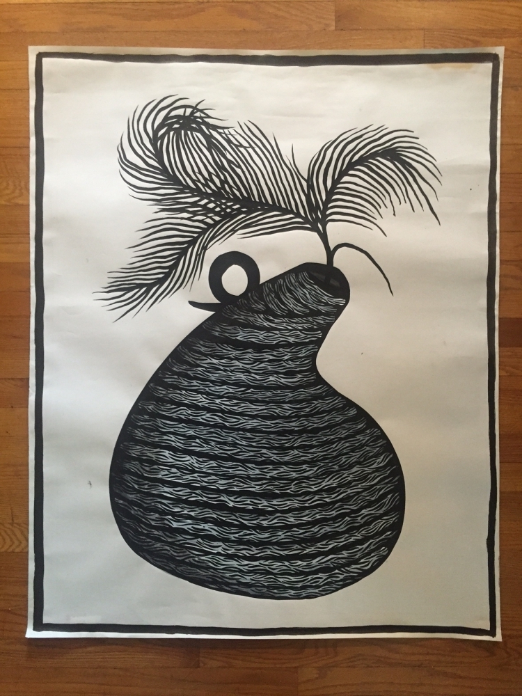 The subject matter found in all of my pyrographic work stems from nature.  This could have been seen from the field where that axe went to work.  A crow entwined by a snake, a rabbit running through a field of thistle.  In contrast to my previous works on canvas, with these burned wooden pieces, I encourage the viewer to interact with the work: to hold it, turn it, see the imagery wrapping around its hilt and imagine who used it last and where it came from, completing its story.” – R.E.Robison