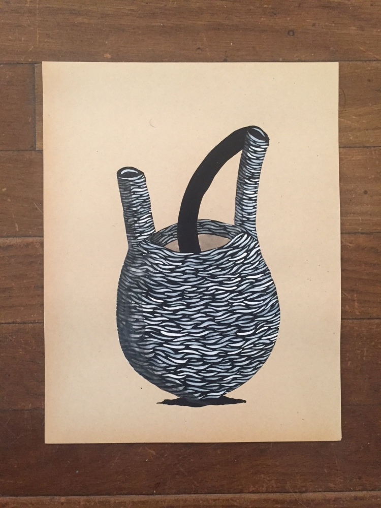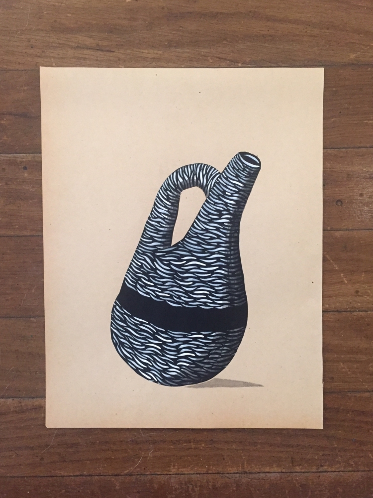 “All of the pieces in this body of work are made of wood and hand carved. They grow out of little sketchbook drawings.