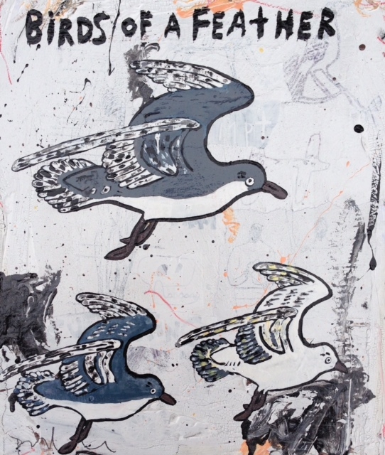 For Shane Garron, it is impossible to map the literal without exploring the landscape of the mind as well. The resulting acrylic and mixed media creations are holistic portraits of time, place, and mindset; text, commercial logos, and icons are interspersed with representational objects and scenes. Some paintings retain the recognizable graphic language of a map, while others abandon themselves to a purely abstract schema focusing on line and color. Above all, it is an atmosphere that Garron captures: one of chaos and half-remembrances, which all come together to form a moment’s state of being.