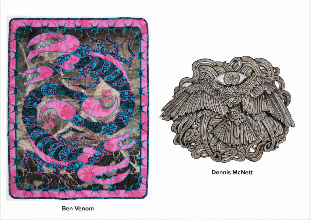 From McNett’s monumental wood carvings to Venom’s punk-infused quilts, DOUBLE TROUBLE reflects the shared values of both institutions: accessibility, craft, subculture, and community.